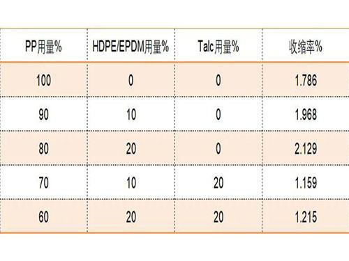 滑石粉用量對聚丙烯收縮率的影響