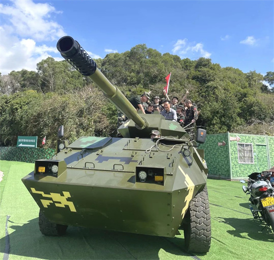 根據(jù)上午的競技排名分?jǐn)?shù),暫居第一名的“亮劍”隊獲得了獎勵--乘坐坦克前往午餐地點,威武的坦克上大家與施總一起分享活動感受,一路馳騁,一路歡聲笑語!
