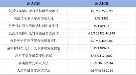 一、常見制品耐黃變測試標準及方法: